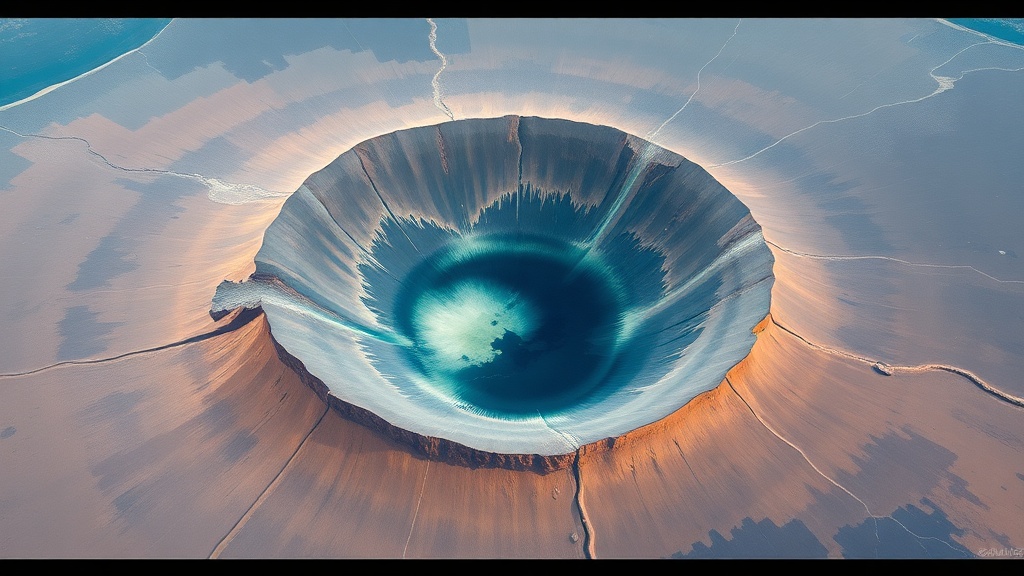 The asteroid that created the crater was approximately 3 miles (5 km) wide. The imagery showcases snow in bright white, ice in blue, and areas of thick vegetation in vivid red, indicating boreal forest and tundra ecosystems that are part of a UNESCO biosphere reserve. The reservoir, known as Manicouagan Lake, was established in the 1960s as part of a hydroelectric project, integrating ancient geological history with modern infrastructure.